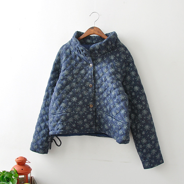 文藝范復(fù)古短款薄棉衣外套印花民族風(fēng)小棉襖中國(guó)風(fēng)印花棉服秋冬女 /
