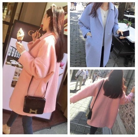 秋冬新品 韓版氣質(zhì)中長款廓形毛呢外套寬松顯瘦純色大衣女士學(xué)生 /