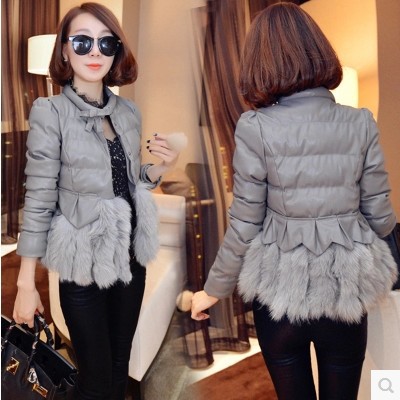 2015歐洲站潮皮草短款棉服外套狐貍毛修身女裝PU皮衣韓版 /
