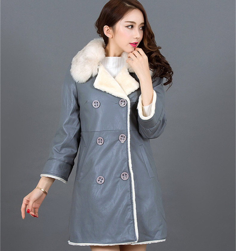 2015冬季新款韓版仿狐貍毛仿綿羊皮皮衣羽絨服女裝中長款皮草外套 /