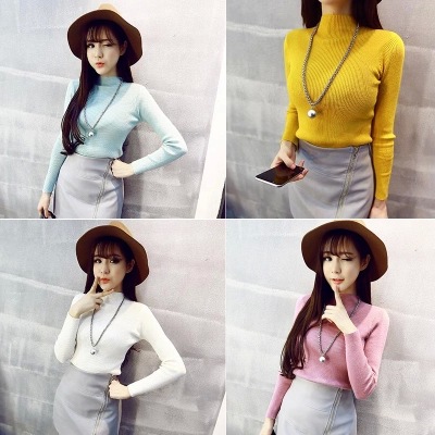 2015秋冬新品韓版百搭半高領(lǐng)長(zhǎng)袖打底毛衣一體式學(xué)生中領(lǐng)針織衫 /