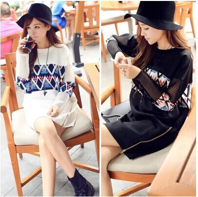 2015秋季新款時尚孕婦裙 波普圖案鏤空拼接袖孕婦連衣裙 /