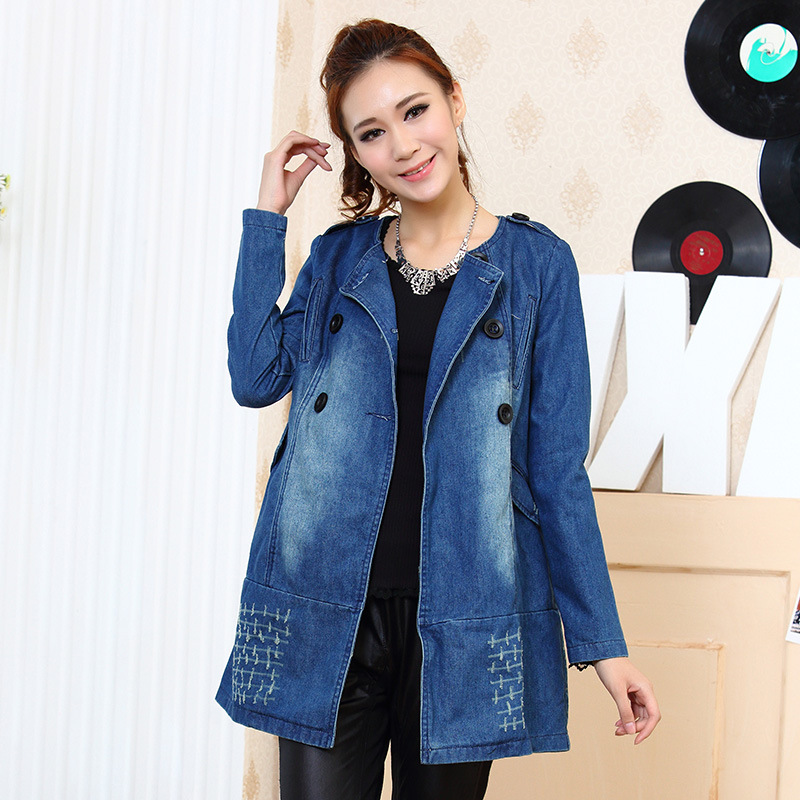 2014秋冬新款韓版女裝工廠直銷批發(fā) 時(shí)尚百搭中長(zhǎng)款牛仔外套9060 /
