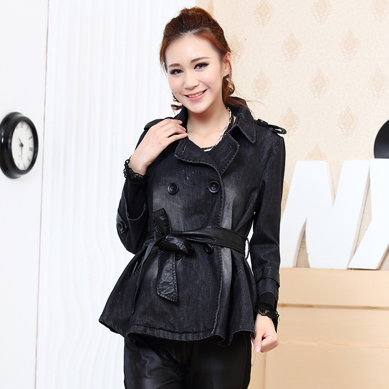 2014秋冬新款韓版女裝 拼接單排扣中長(zhǎng)款顯瘦牛仔風(fēng)衣外套 9022# /