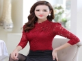 2015新品蕾絲長(zhǎng)袖打底衫高領(lǐng)鏤空秋裝新款韓版女蕾絲衫上衣 /