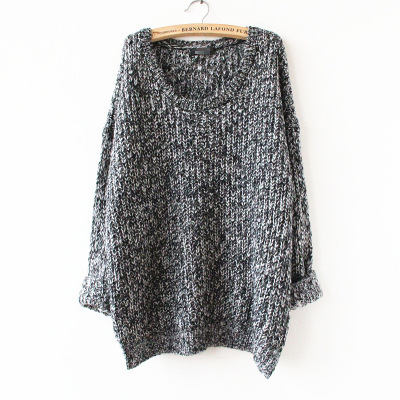 韓國慵懶風(fēng)中長款寬松毛衣大圓領(lǐng)顯瘦雜色薄款針織衫外套女 /