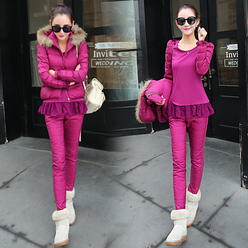 2015冬裝新款時尚羽絨棉服三件套女韓版修身真免毛氣質(zhì)棉衣套裝潮 /