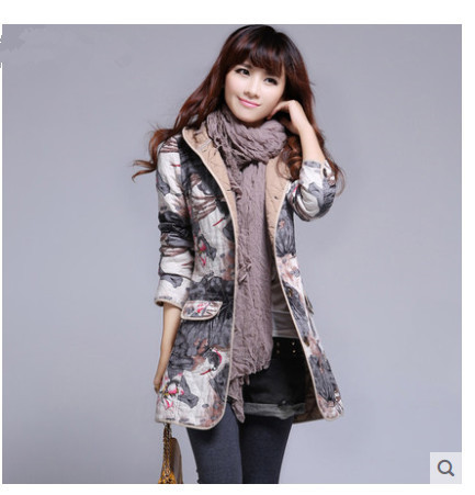 實(shí)拍冬裝新款大碼女裝中長(zhǎng)款印花加棉外套女保暖長(zhǎng)袖夾棉開衫 /