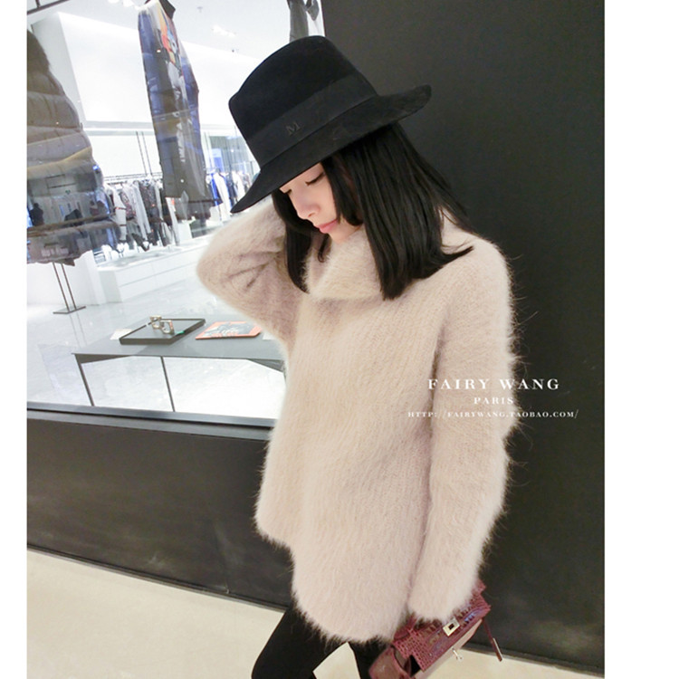 長毛水貂絨衫中長款加厚寬松高領套頭毛衣女堆堆領貂絨外套打底衫 /