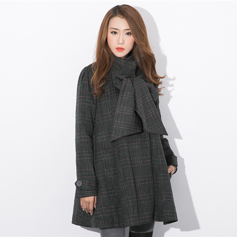 【品質(zhì)特供】2015秋冬新款韓版蕾絲拼接大衣女修身外套送圍脖 /