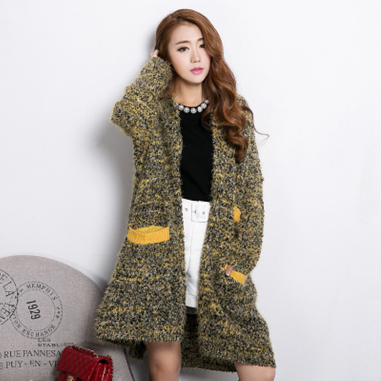 【直銷代發(fā)】2015韓版秋冬新款針織中長款外套長袖厚開衫毛衣外套 /