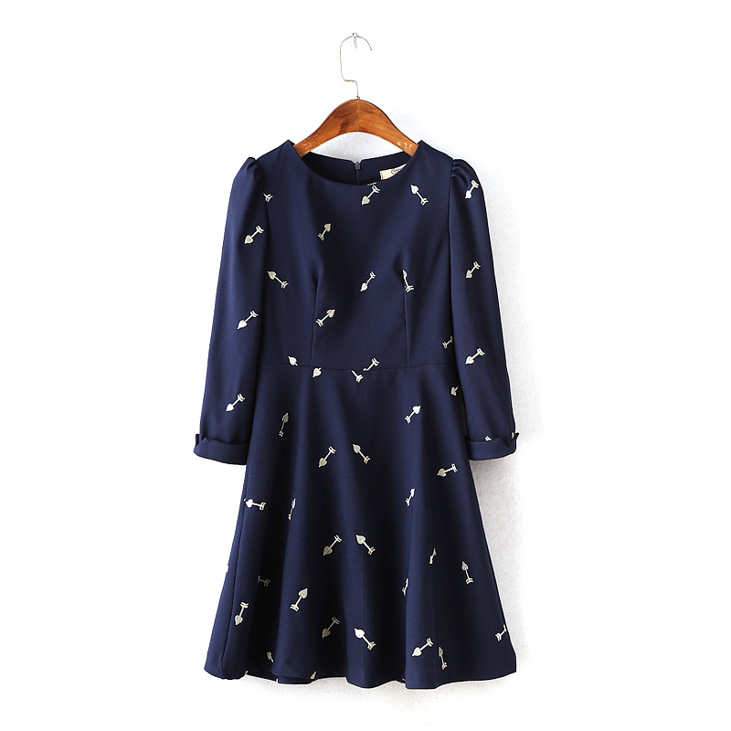 2015冬裝新款修身顯瘦刺繡韓版高腰7分袖連衣裙女30006777 /