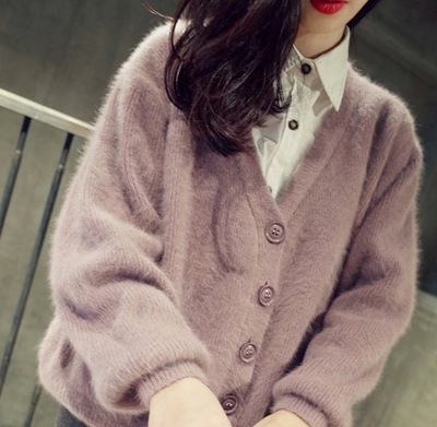 2015韓國東大門代購冬寬松大碼加厚仿貂絨毛衣開衫毛衣外套女6213 /