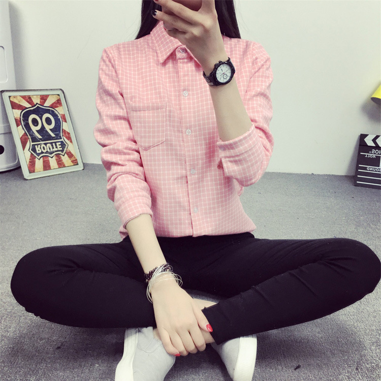 模特實拍學院風加絨加厚保暖格子襯衫 /