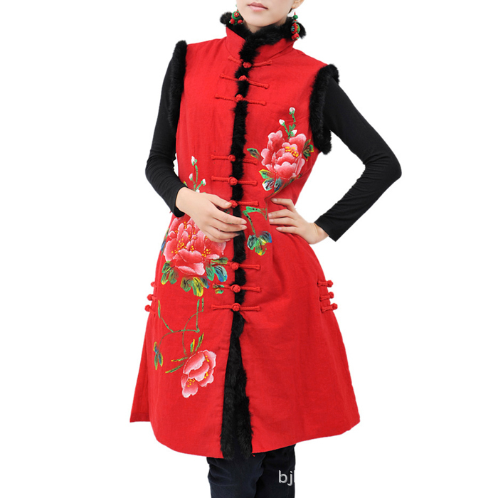 帛衣苑中國風(fēng)民族風(fēng)格中式秋冬毛領(lǐng)刺繡款夾棉馬甲 /