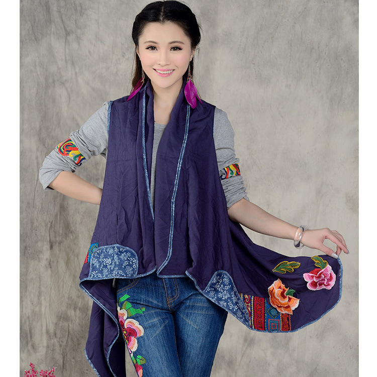 2015設(shè)計(jì)師品牌新款女裝春秋棉麻刺繡背心大碼披肩民族風(fēng) /