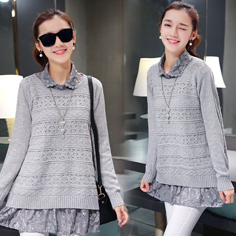 2015秋冬新款針織韓版寬松蕾絲兩件套打底衫毛衣女(實(shí)拍) /