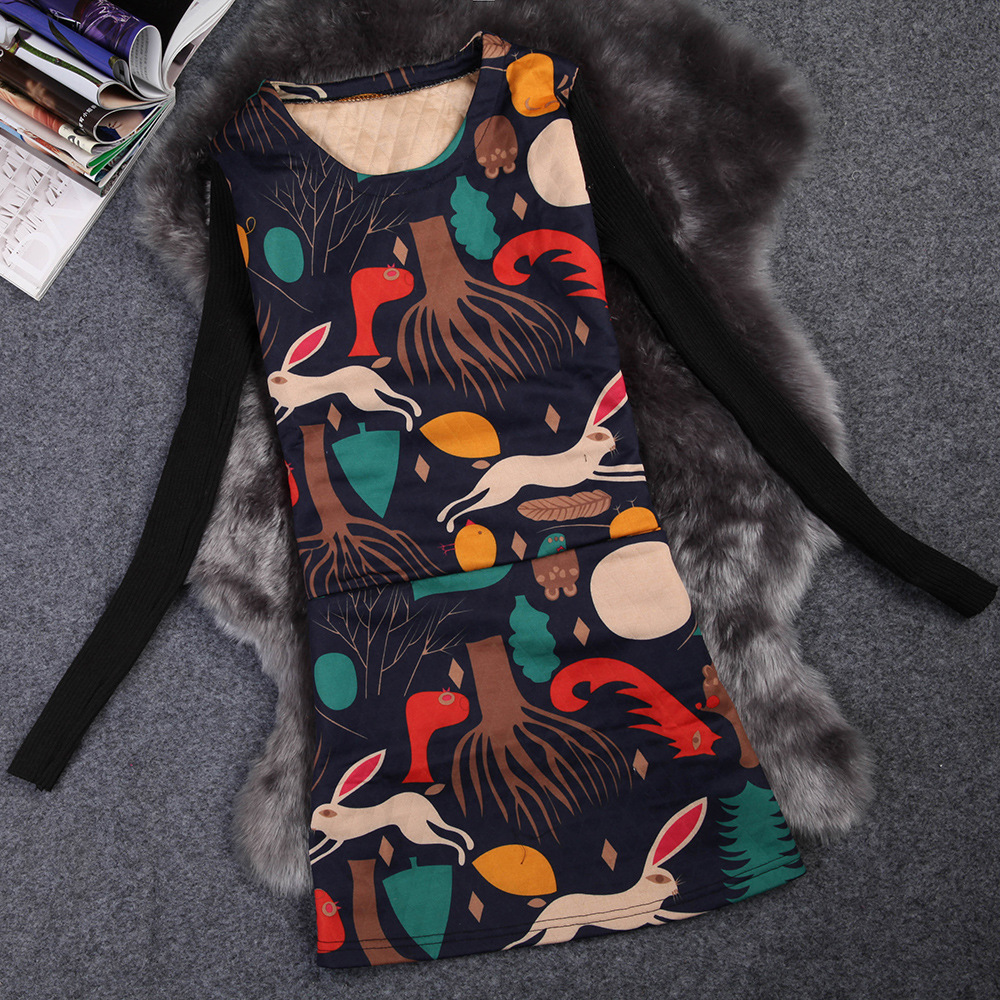 秋冬季新款圓領潮流印花女款連衣裙 2015時尚加棉保暖女士上衣 /