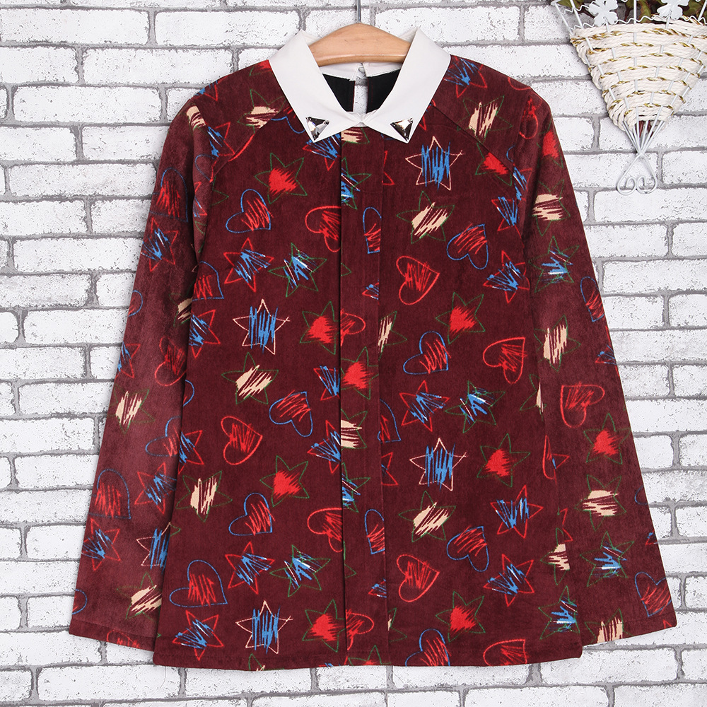 2015新款秋冬季女款印花打底衫 時尚假襯衫翻領女士休閑長袖T恤 /