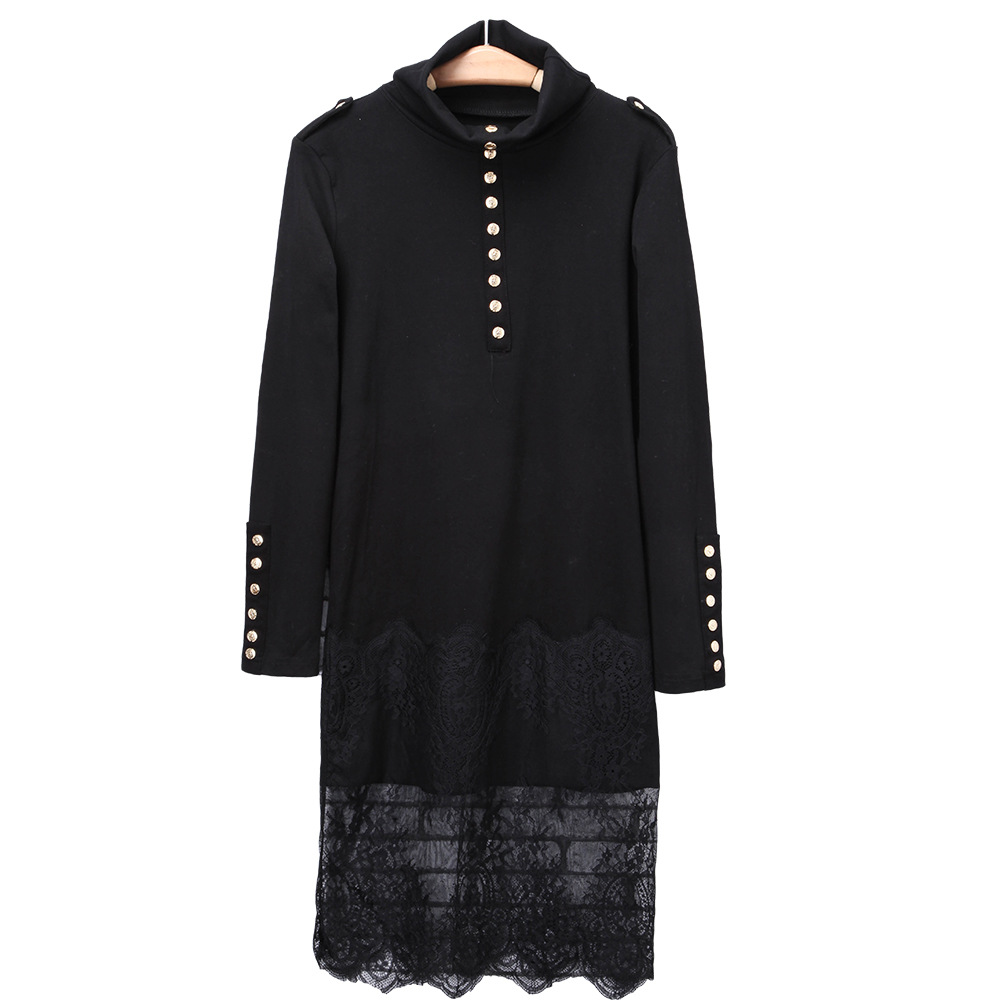2015秋季新款圓領蕾絲底邊連身長裙 時尚休閑學院風女款連衣裙 /