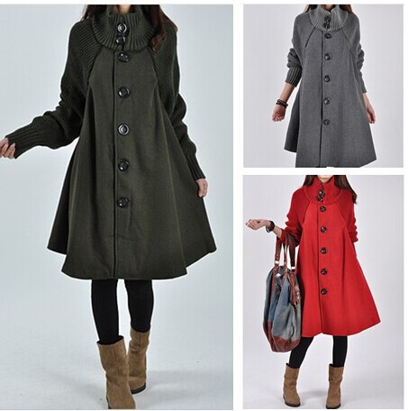 2015秋冬新品韓版大碼寬松呢子斗篷風(fēng)衣外套女士毛呢大衣 /