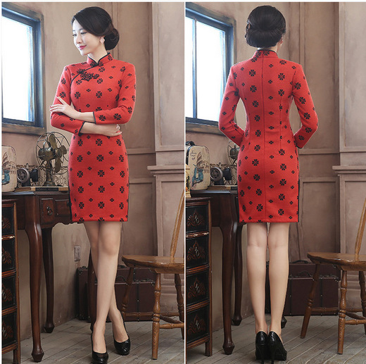2015冬裝新款復(fù)古時(shí)尚加厚毛呢旗袍裙 /