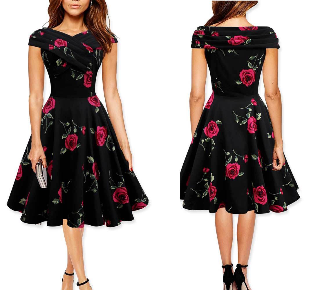 速賣通爆款連衣裙外貿(mào)復(fù)古赫本風(fēng)收腰顯瘦大擺裙蓬蓬裙 /