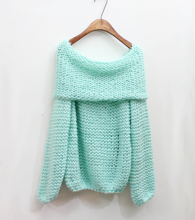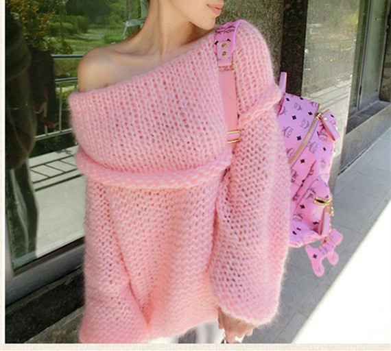 2015秋季冬季新款露肩一字領(lǐng)純色毛衣女寬松套頭馬海毛毛衣批發(fā) /