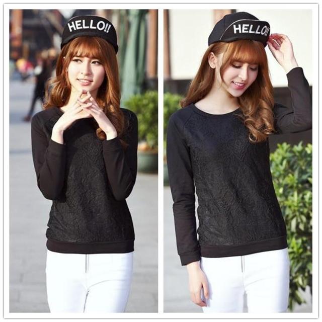 T2015新款蕾絲提花打底衫女圓領(lǐng)T恤長袖上衣潮體恤 /