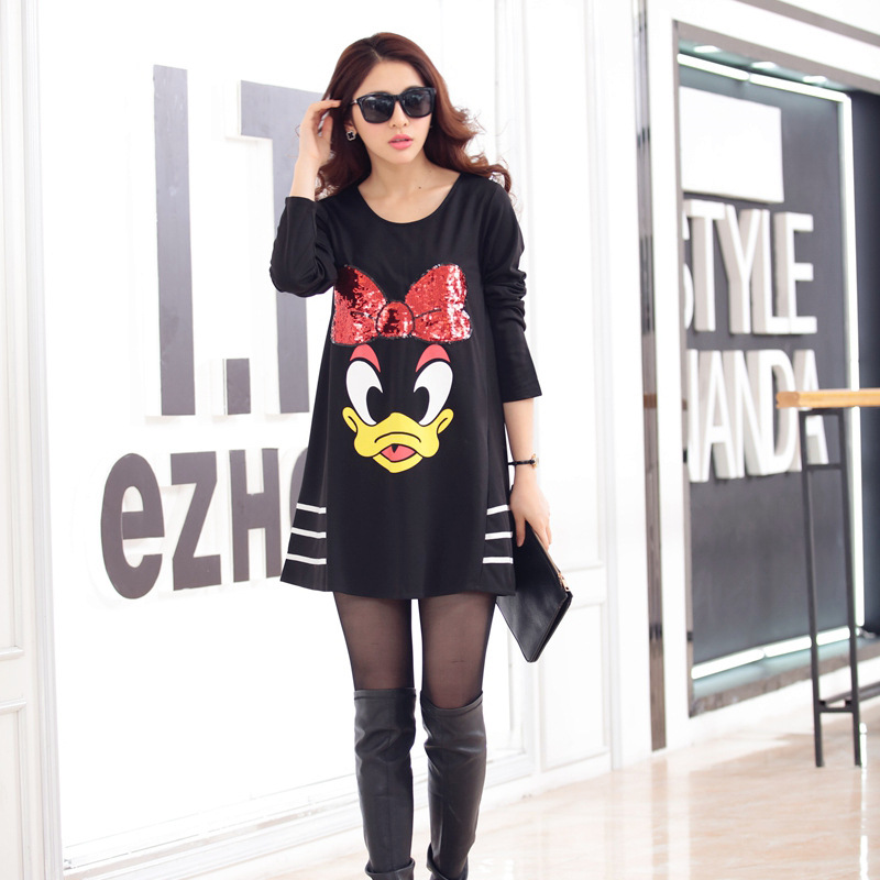實(shí)拍8389 歐洲站英倫同款印花亮片大碼寬松打底連衣裙 /