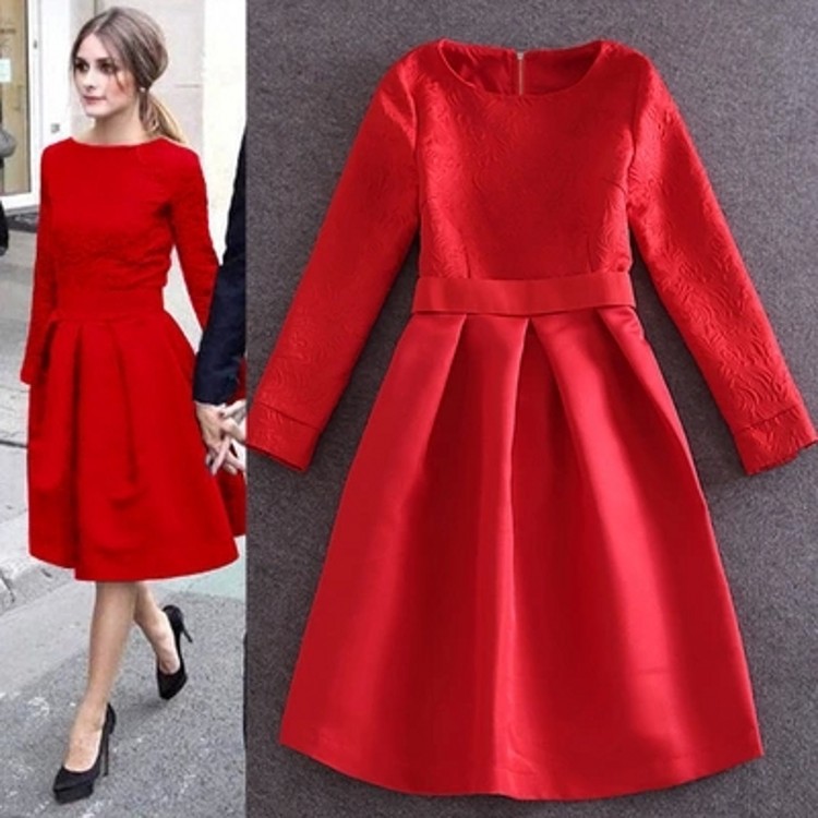 歐洲站名媛赫本風提花修身蓬蓬公主裙新娘婚禮大紅敬酒服連衣裙 /