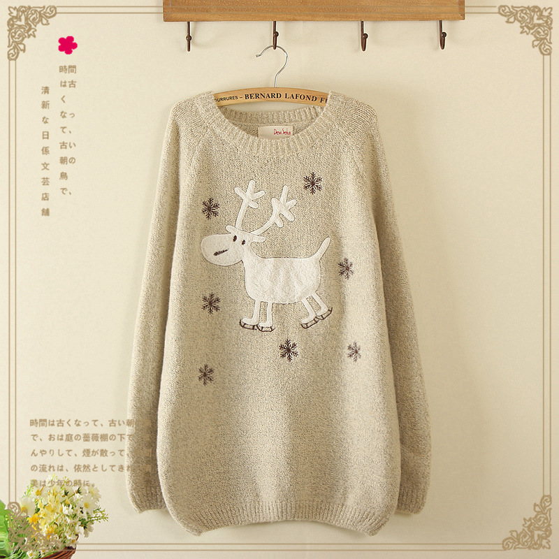 日系森女系秋冬新款毛 雪花麋鹿 圓領寬松 套頭針織毛衣 女裝批發(fā) /