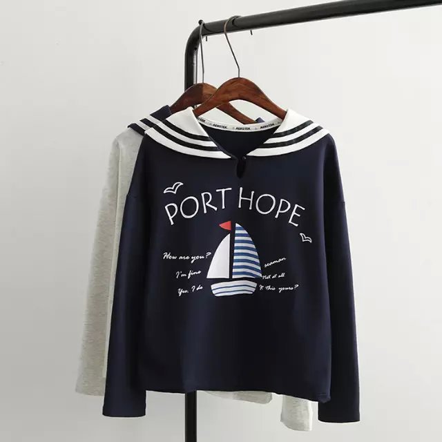 2015秋季日系森女系字母寬松帆船海軍領長袖T恤 女2292 /