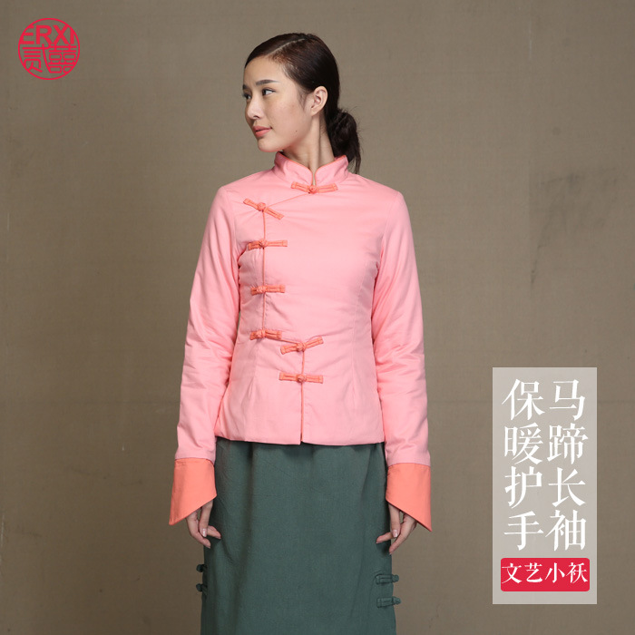 貳喜唐裝棉襖女民族風(fēng)棉衣棉麻冬外套中式旗袍棉襖修身中長(zhǎng)夾棉袍 /