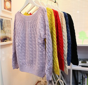 2014秋冬韓版毛衣女 寬松套頭打底麻花圓領(lǐng)長(zhǎng)袖外套針織衫女批發(fā) /