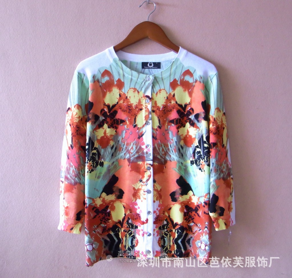 外貿原單新款韓版中老年女裝媽媽裝印花七分袖秋裝開衫批發(fā) /