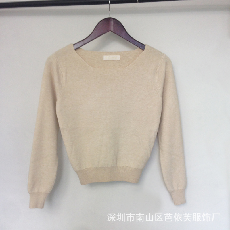 秋冬新款韓版一字領短款針織衫長袖修身毛衣套頭打底衫女批發(fā) /