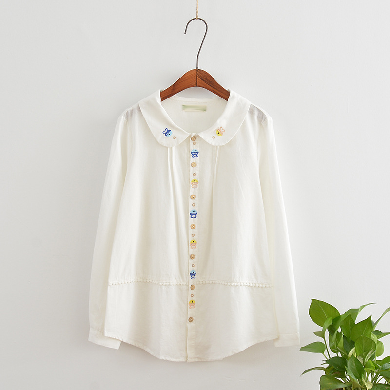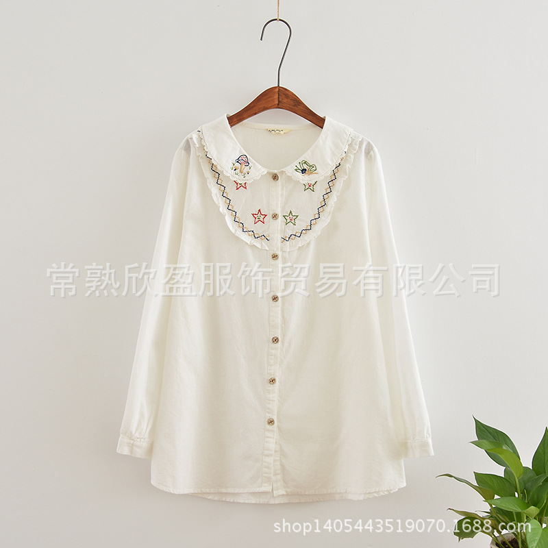 2015秋裝新款日系小清新刺繡小魚長(zhǎng)袖秋季襯衣女襯衫 /