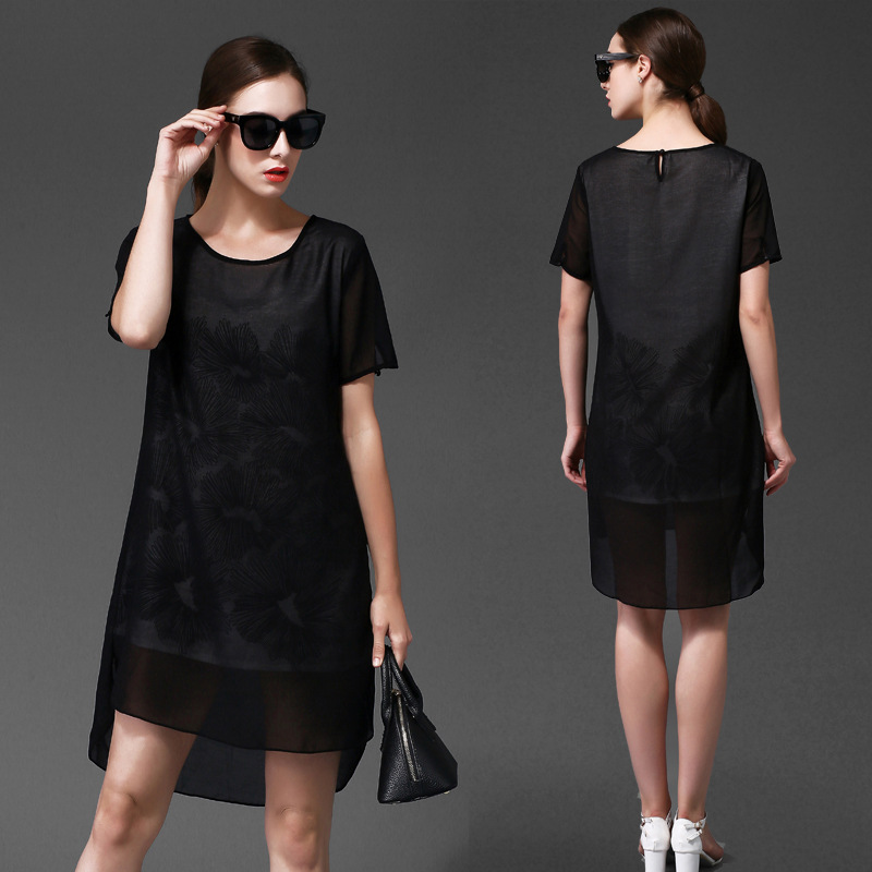 1775歐洲站大碼女裝夏裝新款胖mm寬松顯瘦印花雪紡大碼短袖連衣裙 /