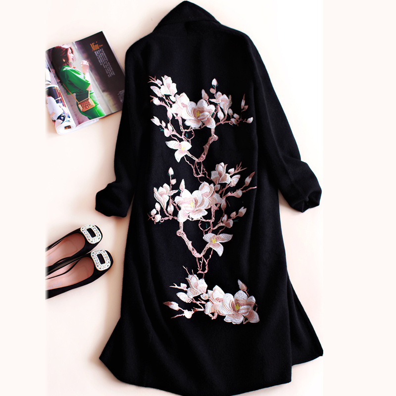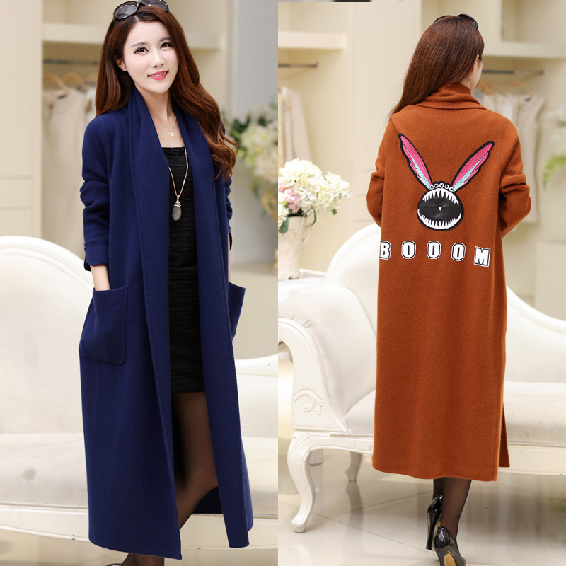 2015秋冬歐美高端刺繡長款貂絨大衣女加厚長袖貂絨毛衣開衫外套 /