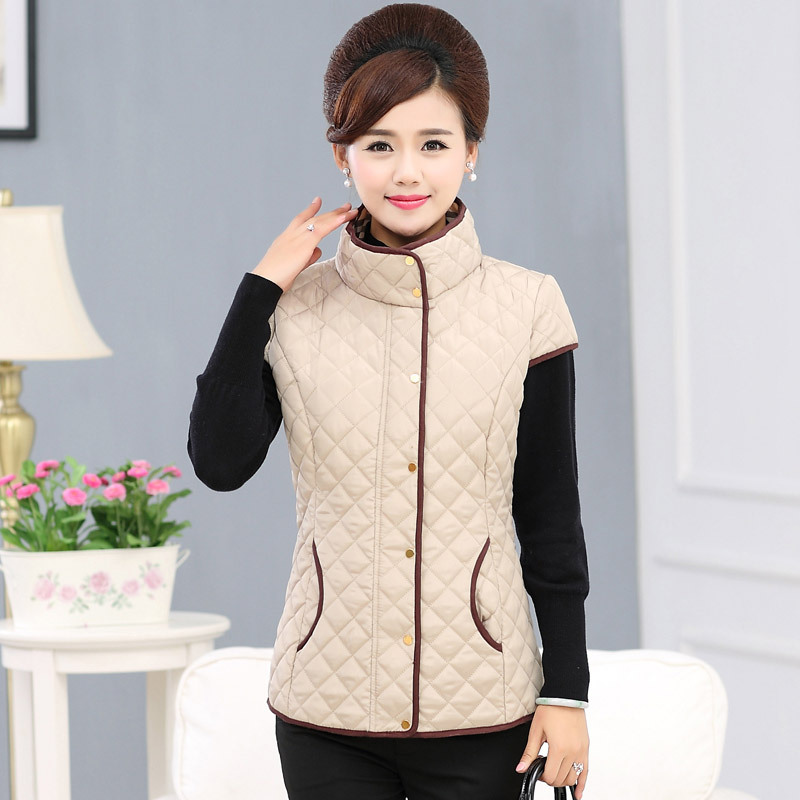 2015秋冬新款短袖棉馬甲純色立領(lǐng)撞色包邊中年媽媽裝棉馬夾跑量款 /