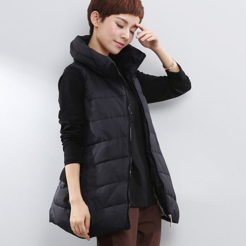 2015冬裝新品棉衣馬甲 寬松A字板型純色翻領(lǐng)加厚女裝中長款棉背心 /