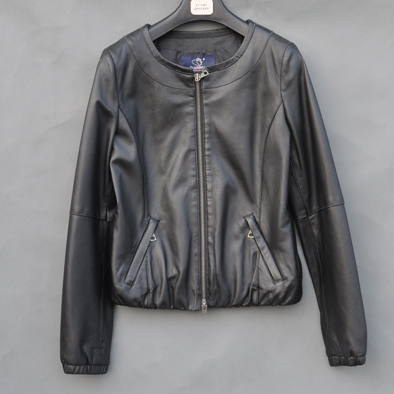 2014年春季新款綿羊皮外套 真皮皮衣短款女裝圓領(lǐng)皮衣外套清倉 /