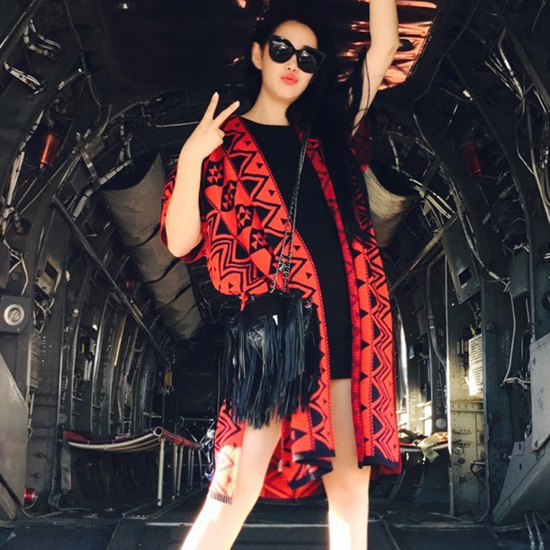 左岸瀟同款韓版大碼羊毛毛衣中長(zhǎng)款針織開衫紅色披肩外套1007 /