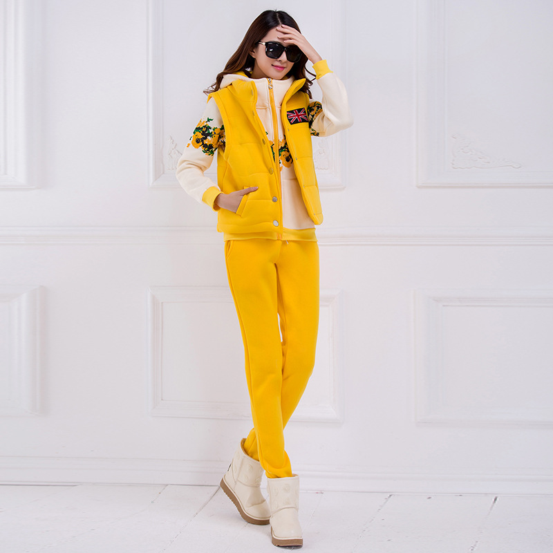 【實(shí)拍】秋冬女裝加絨加厚運(yùn)動(dòng)衛(wèi)衣三件套韓版修身女套裝 /