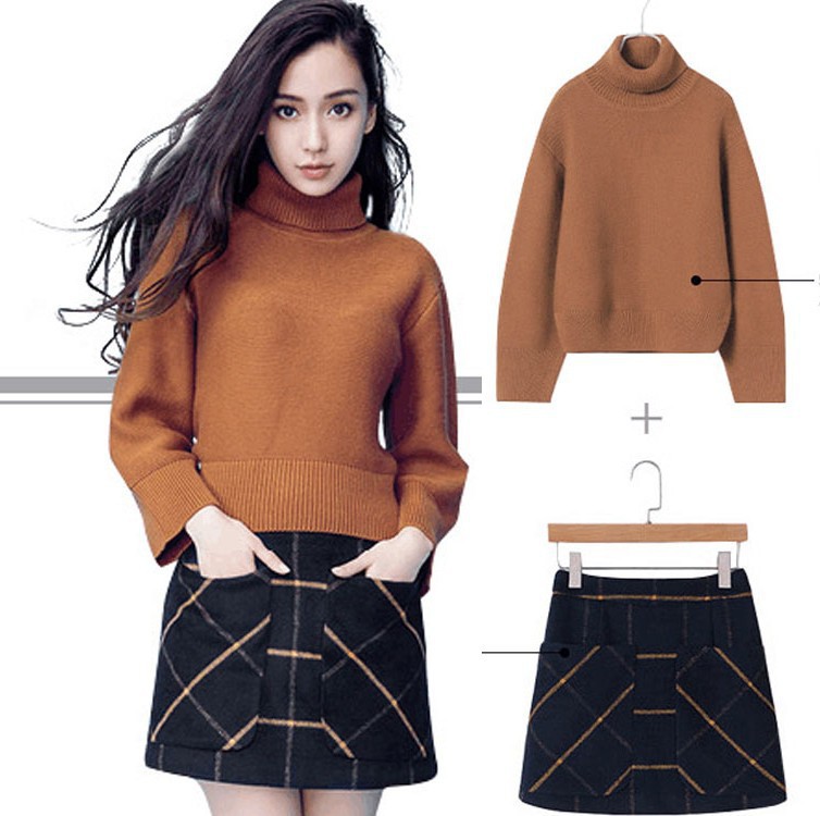 anglebaby楊穎明星同款套頭毛衣寬松高領(lǐng)打底衫 半身裙套裝 /