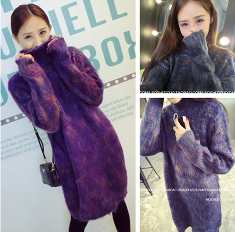 秋冬新款女裝韓版修身高領(lǐng)毛衣長(zhǎng)袖連衣裙加厚加絨包臀打底裙 /