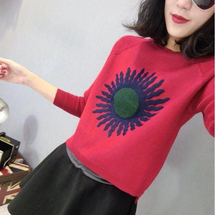 2015秋裝歐貨時(shí)尚厚針織衫太陽(yáng)花打底衫套頭毛衣女 /