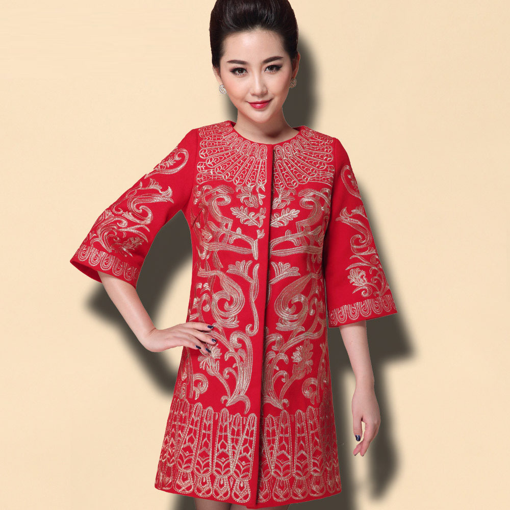 2015秋冬新款中老年女裝高端婚宴外套媽媽裝刺繡風衣毛呢大衣 /