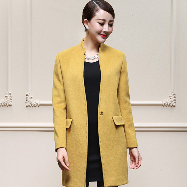 簡介: 產地深圳 主圖來源實拍有模特 產品類別大衣 貨源類別現(xiàn)貨 面料名稱毛呢 主面料成分聚酯纖維(滌綸) 主面料成分的含量90(%) 里料成分聚酯纖維(滌綸) 圖案純色 風格OL通勤 厚薄普通 版型修身型 衣長長款(80cm<衣長≤100cm) 領型圓領 袖長長袖 衣門襟暗扣 是否有腰帶無腰帶 上市年份/季節(jié)2015秋季 顏色黃色,粉色,駝色 尺碼M,L,XL,